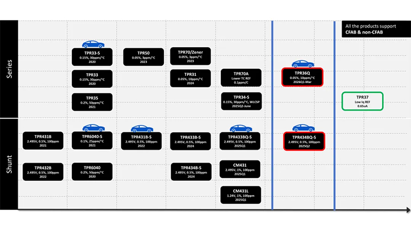 面对多元化的市场需求,思瑞浦建立了多维度的电压基准产品矩阵: