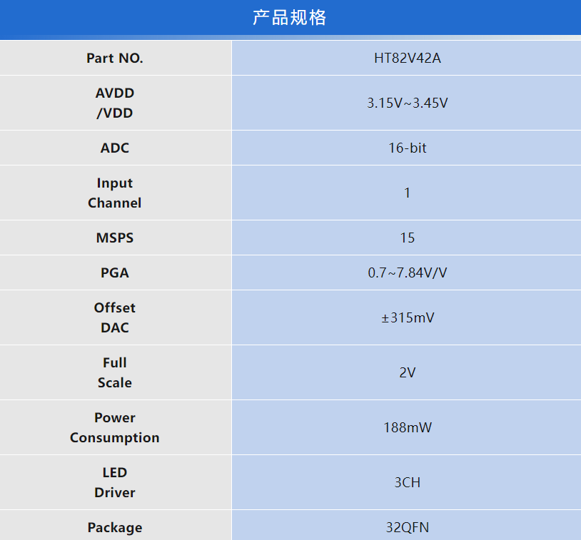 HOLTEK新推出的HT82V42A单通道CCD/CIS模拟信号处理器整合LED驱动器,具有以下特点和优势: