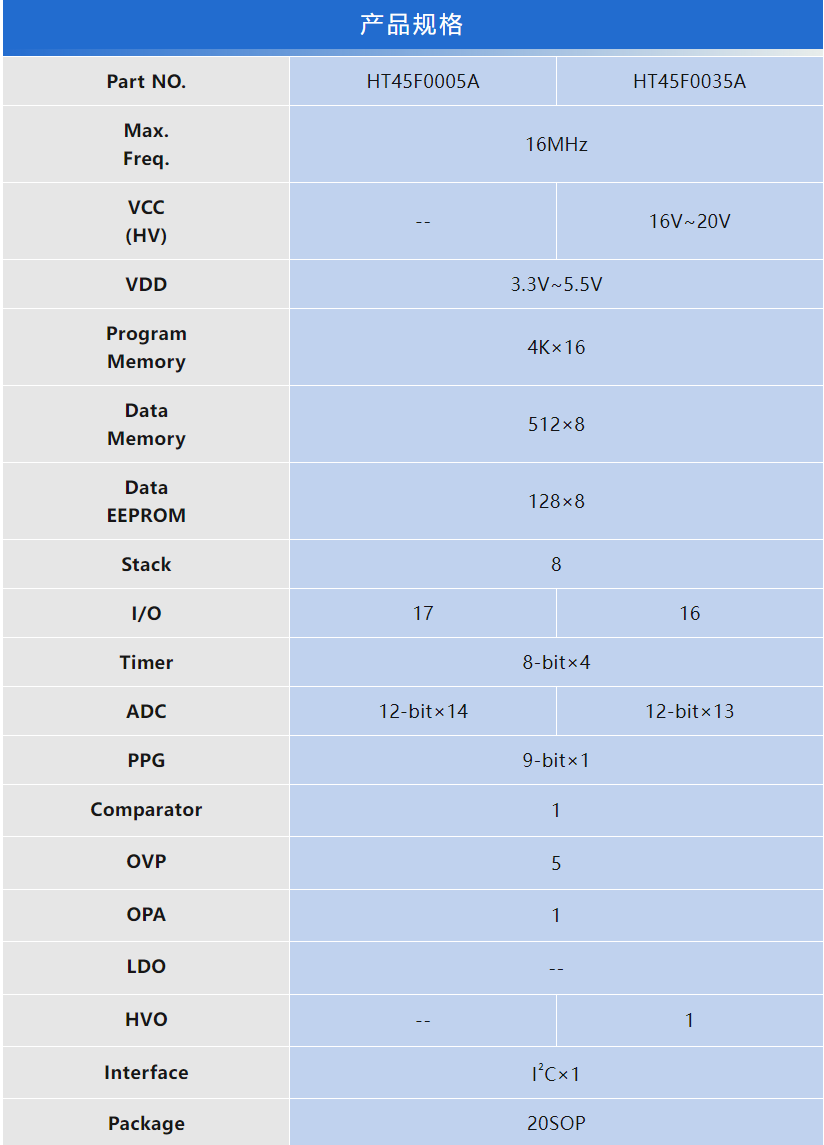 HOLTEK新推出的HT45F0005A/35A是新一代的电磁炉Flash MCU。以下是关于它的一些特点: