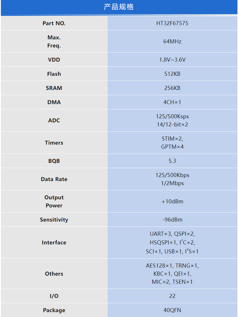 作为一款支持蓝牙BLE 5.3标准的MCU,HT32F67575具备诸多显著优势。其拥有更远的传输距离,相比前代蓝牙标准,有效通信范围得到了显著扩展。在智能家居环境中,这意味着智能设备与中控中心或手机之间的连接更加稳定可靠,即使在较大的房间或多层建筑内,也能保持良好的信号传输。同时,蓝牙BLE 5.3的低功耗特性在HT32F67575上得到了充分体现。在蓝牙连接状态下,设备能够以极低的功耗运行,大大延长了电池供电设备的续航时间。例如,在智能手表中,即使开启蓝牙持续与手机保持连接,也不会对电池电量造成过大的消耗,满足了用户对于长续航智能穿戴设备的需求。此外,蓝牙BLE 5.3还支持多连接功能,使得单个MCU可以同时与多个蓝牙设备进行通信,这在一些复杂的物联网应用场景中,如智能工厂的设备互联或智能家居中的多设备协同工作,具有极高的实用价值。
