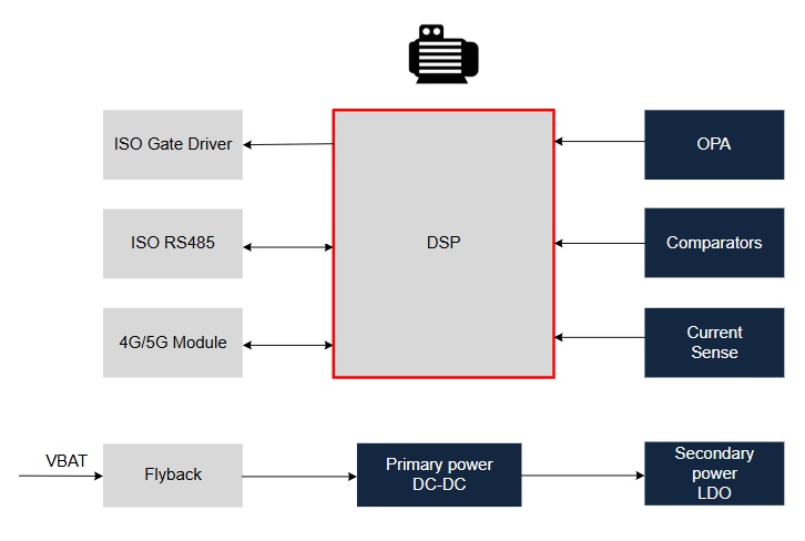 DIOO帝奥微凭借对新能源汽车电机驱动场景的深刻理解,将OPA、Comparators、CurrentSense、Secondary powerLDO、Primary powerDC-DC深度整合,打造出模块化、可定制的电机驱动解决方案,适配不同功率等级的新能源汽车驱动电机(如永磁同步电机、异步电机)。该方案中,Primary powerDC-DC与Secondary powerLDO构建双级供电保障,OPA与Comparators实现精准信号处理与阈值判断,CurrentSense实时监测电流状态,所有芯片协同工作,形成“供电-感知-控制-保护”的全链路闭环,不仅提升了电机驱动系统的运行效率与控制精度,还具备完善的故障保护功能,可有效应对过流、过温、欠压等异常情况,全方位保障电机驱动系统安全稳定运行[4][6]。